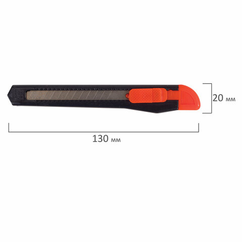 Нож канцелярский 9 мм STAFF "Basic", фиксатор, цвет корпуса ассорти, упаковка с европодвесом, 230484