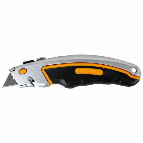Нож универсальный мощный алюминиевый BRAUBERG "Heavy duty", автофиксатор, резиновые вставки, 238735