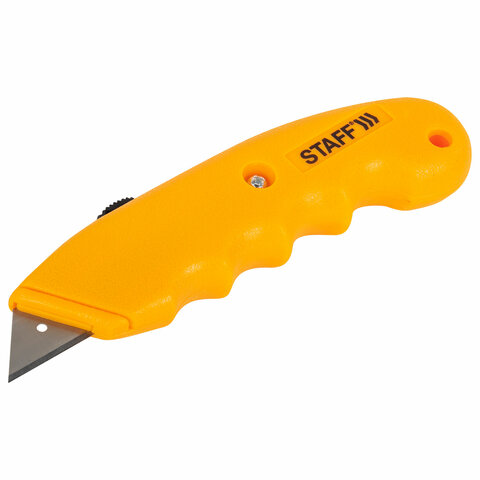 Универсальный мощный нож с автофиксатором STAFF PRO – инструмент, который поможет при резке бумаги, пластика, картона и прочих плотных и вязких материалов: линолеума, гипсокартона, ковролина.