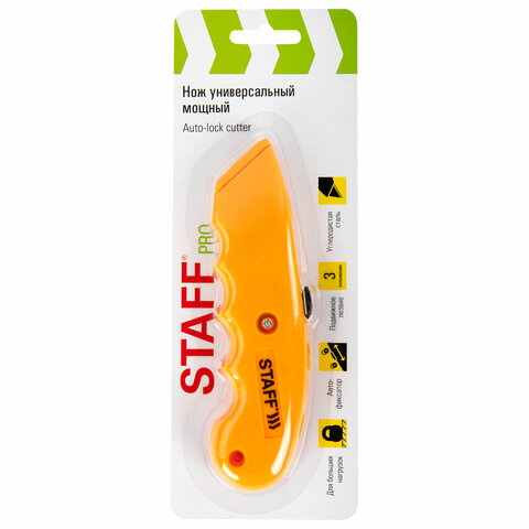 Нож универсальный мощный STAFF PRO, автофиксатор с 3 положениями, ABS-пластик, 238733