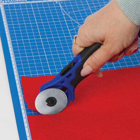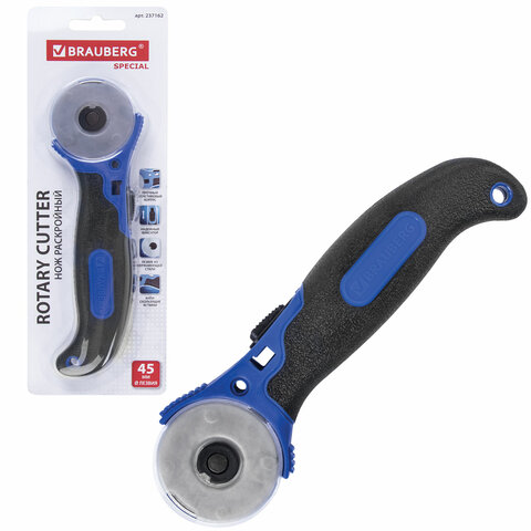 Нож раскройный роликовый 45 мм BRAUBERG, круглое лезвие, резиновые вставки, 237162