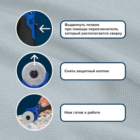 Роликовый нож подходит для быстрого, точного и качественного разрезания всех видов ткани, кожи, замши, бумаги и прочих материалов.