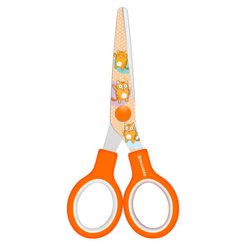 Ножницы 130 мм оранжевые, с цветной печатью "Котики", закругленные, BRAUBERG KIDS, 238351