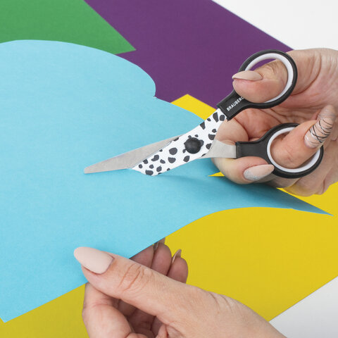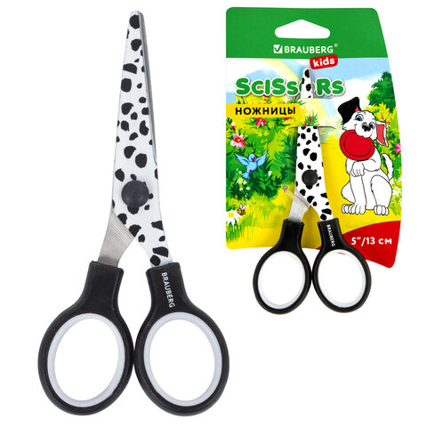 Ножницы 130 мм с цветной печатью "Далматин", чёрно-белые, закругленные, BRAUBERG KIDS, 232276