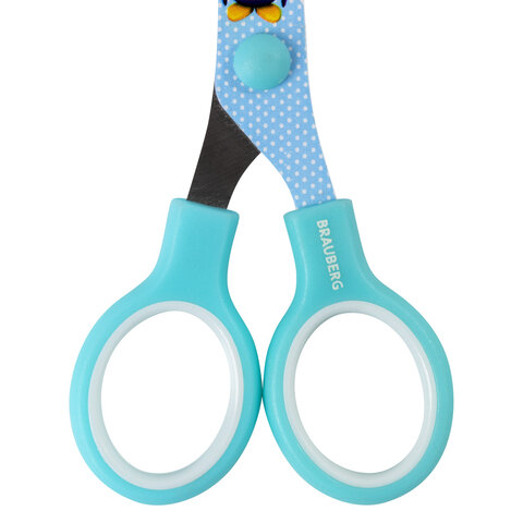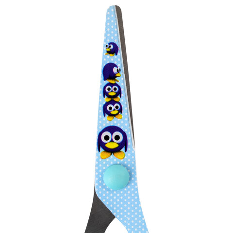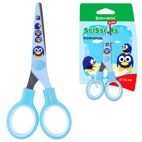 Ножницы 130 мм с цветной печатью "Пингвины", голубые, закругленные, BRAUBERG KIDS, 232271