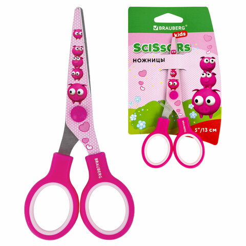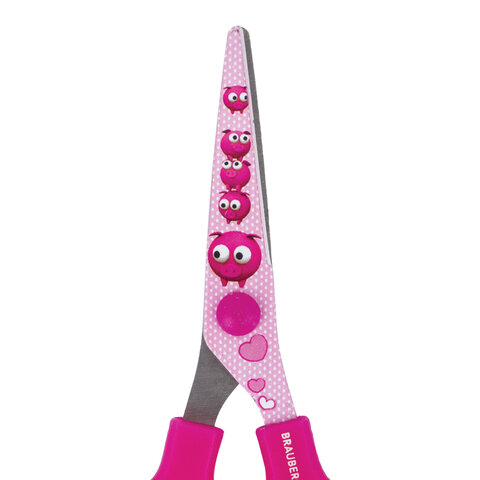 Ножницы 130 мм с цветной печатью "Поросята", розовые, закругленные, BRAUBERG KIDS, 232272