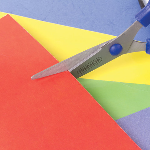 Ножницы ПИФАГОР, 130 мм, резиновые вставки, картонная упаковка с подвесом, ассорти, 236984