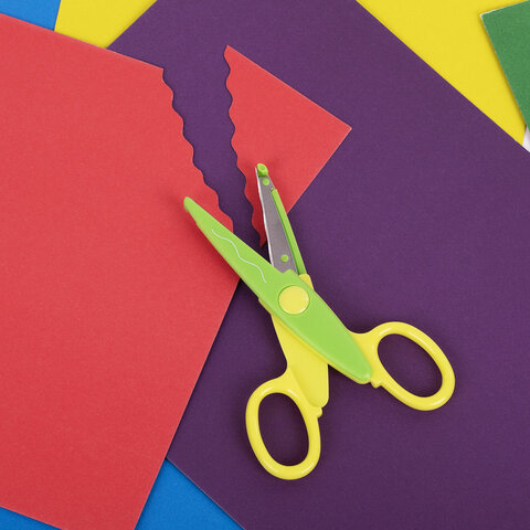 Ножницы с фигурным лезвием ПИФАГОР предназначены специально для детского творчества. Используются для вырезания деталей аппликаций и создания фигурного края поделок: открыток, страничек альбомов и блокнотов.