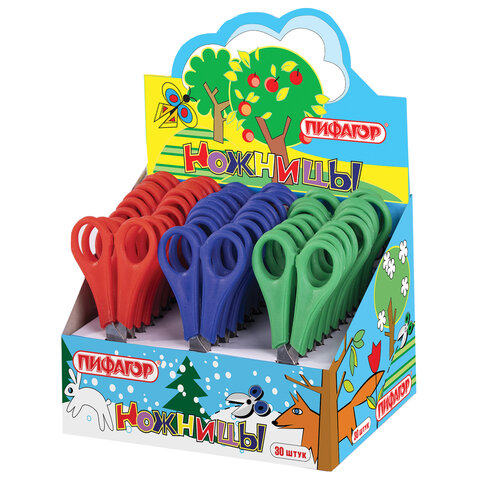 Ножницы ПИФАГОР, 135 мм, с линейкой, ассорти, в дисплее, 230936