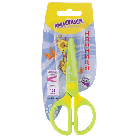 Ножницы ЮНЛАНДИЯ "МУЛЬТЯШКИ", 125 мм, с безопасными пластиковыми лезвиями, зеленые, 236983
