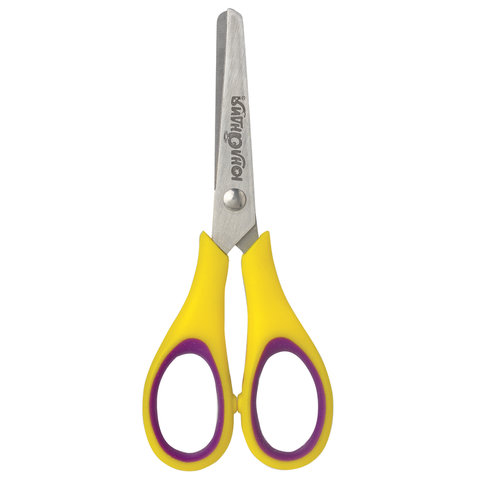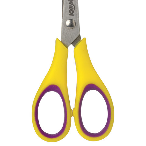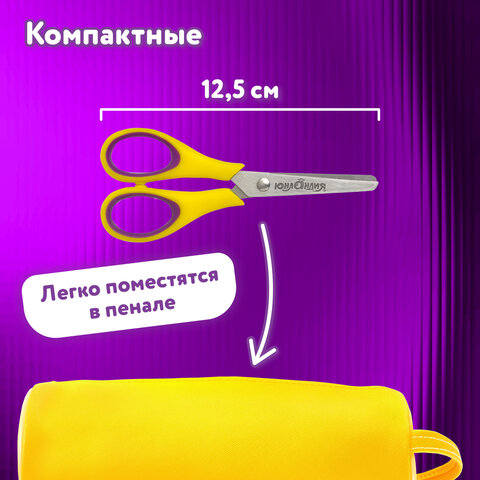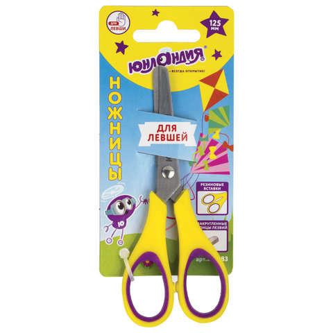 Ножницы ЮНЛАНДИЯ "ВОЗДУШНЫЙ ЗМЕЙ", 125 мм, для левши, резиновые вставки, желто-фиолетовые, европодвес, 236783