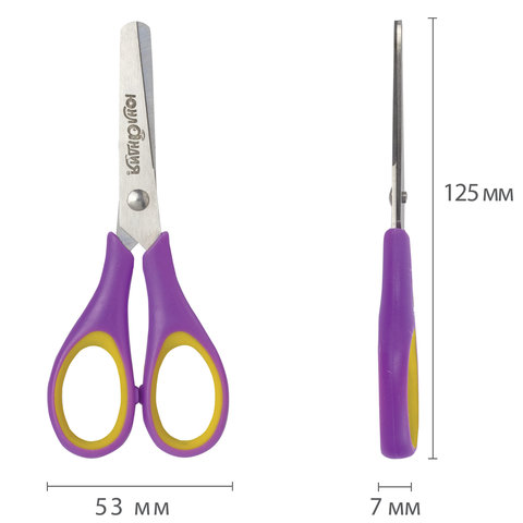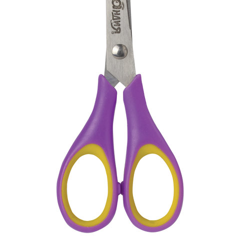 Ножницы ЮНЛАНДИЯ "ВОЗДУШНЫЙ ЗМЕЙ", 125 мм, для правши, резиновые вставки, фиолетово-желтые, европодвес, 236856