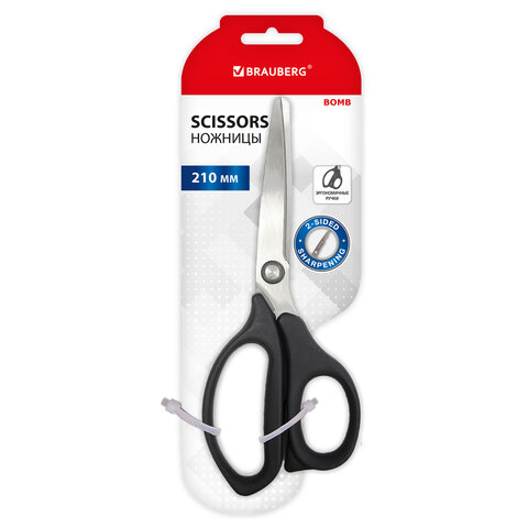 Ножницы BRAUBERG "BOMB", 210 мм, графитовый цвет, 2-сторонняя заточка, эргономичные, 238856