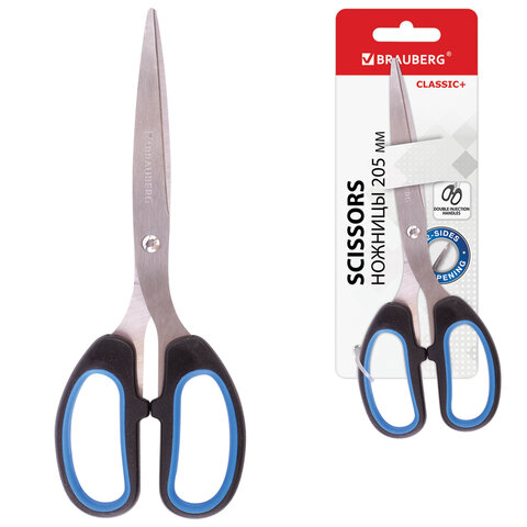Ножницы BRAUBERG "Classic+", 205 мм, черно-синие, классической формы, резиновые вставки, 236449