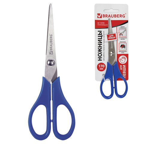 Ножницы BRAUBERG для левши "Left hand", 170 мм, синие, 2-х сторонняя заточка, 236785