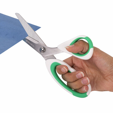 Комплект универсальных ножниц BRAUBERG. Эти ножницы идеально подходят для резки бумаги, картона и других материалов, что делает их незаменимыми как в офисе, так и дома.