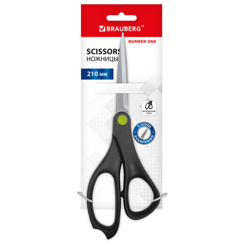 Ножницы BRAUBERG "NUMBER ONE", 210 мм, черные, 3-сторонняя заточка, эргономичные ручки, 238850