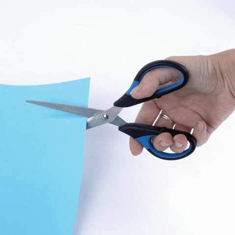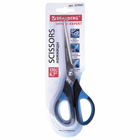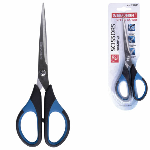 Ножницы BRAUBERG "Office-Expert" 170 мм, сине-черные, резиновые вставки, 3-х сторонняя заточка, 231561