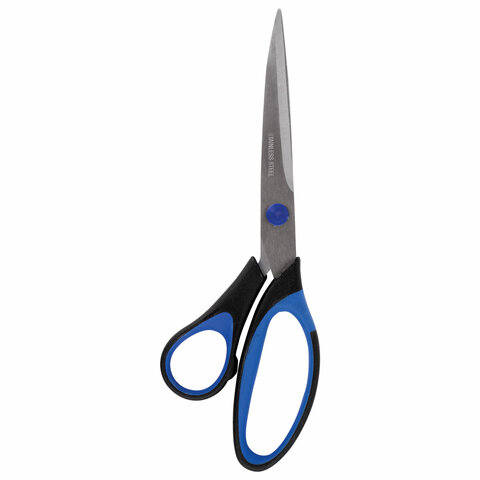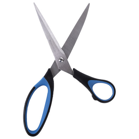 Ножницы BRAUBERG "Office-Expert" 216 мм, сине-черные, резиновые вставки, 3-х сторонняя заточка, 231563
