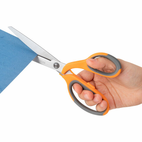 Набор универсальных ножниц BRAUBERG. Эти ножницы идеально подходят для резки бумаги, картона и других материалов, что делает их незаменимыми как в офисе, так и дома.