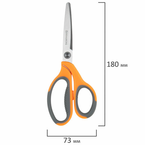 Ножницы BRAUBERG "PROFESSIONAL" 3 шт. (135, 180, 210 мм), серо-оранжевые ручки, ВЫГОДНАЯ УПАКОВКА, 272981