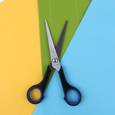 Ножницы BRAUBERG "Soft Grip", 165 мм, черно-синие, резиновые вставки, 3-сторонняя заточка, 230761