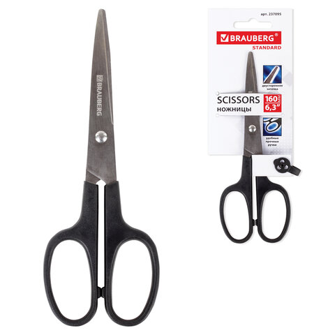 Ножницы BRAUBERG "Standard" 160 мм, черные, классической формы, 2-х сторонняя заточка, 237095