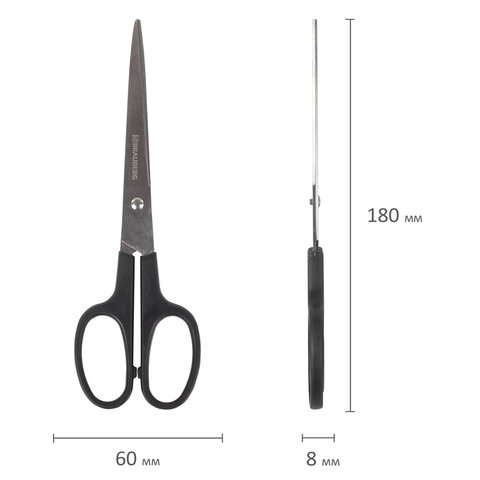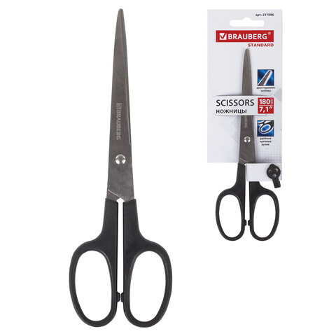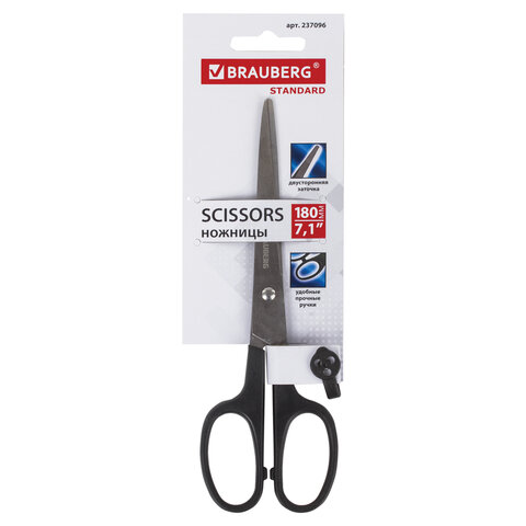 Ножницы BRAUBERG "Standard" 180 мм, черные, классической формы, 2-х сторонняя заточка, 237096