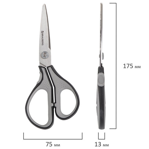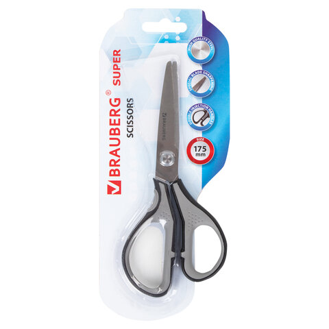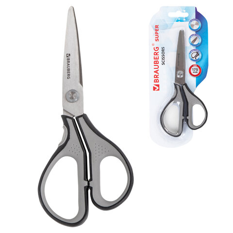 Ножницы BRAUBERG "EXTRA", 175 мм, серо-черные, 2-х сторонняя заточка, эргономичные ручки, 237295