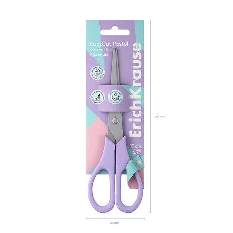 Ножницы ERICH KRAUSE "EasyCut Pastel" 170 мм, цвет ассорти, в картонной упаковке с европодвесом, 60875