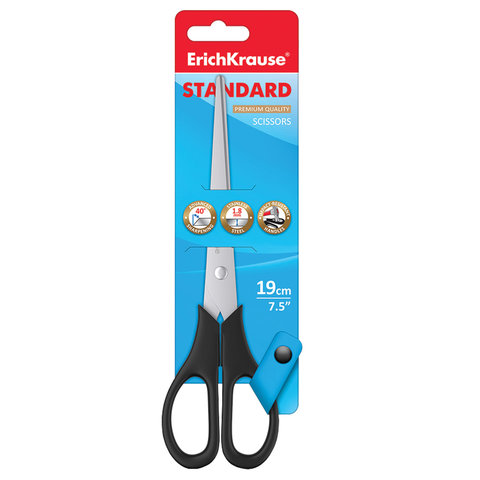 Ножницы ERICH KRAUSE "Standard", 190 мм, черные, в картонной упаковке с европодвесом, 21881
