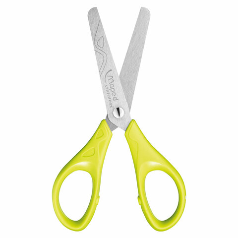 Канцелярские ножницы MAPED для использования в школе и дома. Подходят для детей от 4-х лет. Привлекательный дизайн с яркими ручками и узором на лезвии. Цвет ручек - ассорти: голубой, салатовый, розовый.