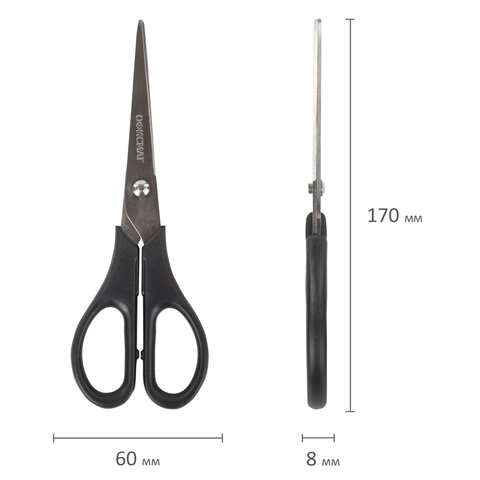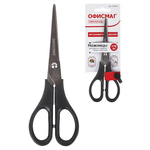 Ножницы ОФИСМАГ "Standard" 170 мм, классической формы, черные, 237099