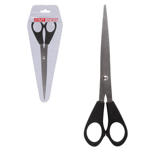 Ножницы STAFF - удобный инструмент для резки картона, бумаги, и прочих материалов. Специальная двусторонняя заточка лезвий делает их острыми и позволяет сохранить режущие свойства даже в условиях интенсивной работы.
