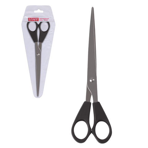 Ножницы STAFF Basic, 180 мм, чёрные, ПВХ чехол с европодвесом, 236939