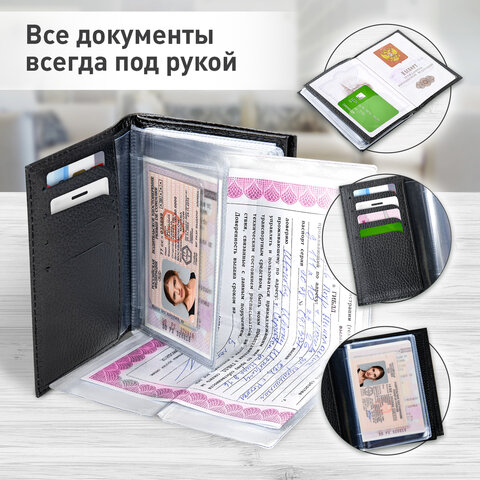 Обложка для автодокументов BRAUBERG защищает документы от изнашивания и загрязнения, придает им респектабельный вид.