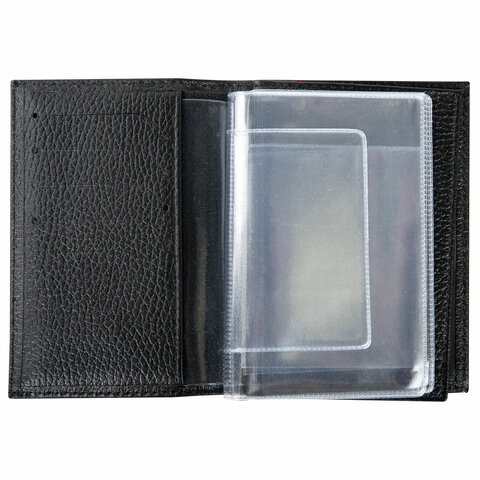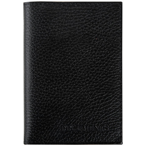 Обложка для автодокументов и паспорта натуральная кожа флоттер, "DOCUMENTS", черная, BRAUBERG 238193