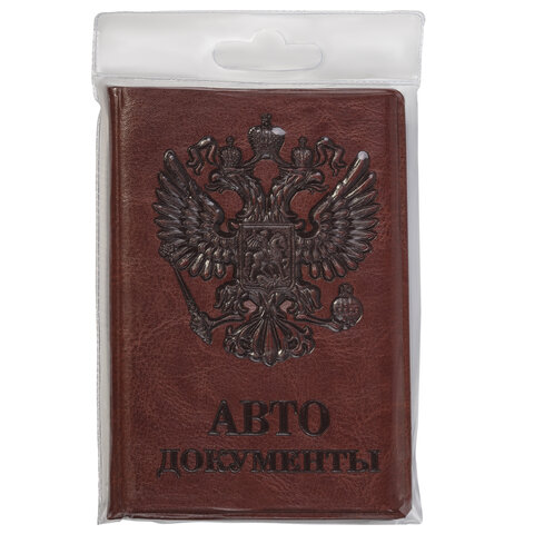 Обложка для автодокументов STAFF, полиуретан под кожу, "АВТОДОКУМЕНТЫ", коричневая, 237598