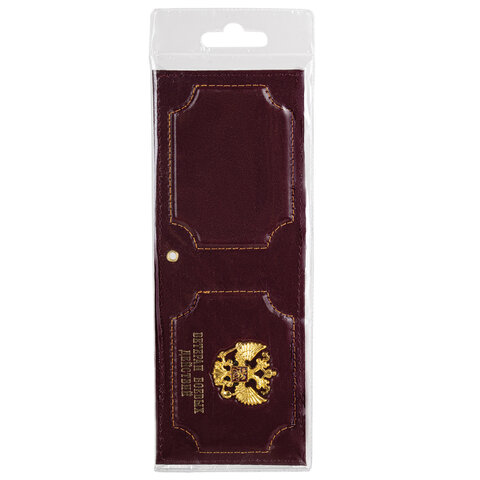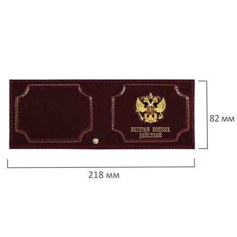 Обложка для удостоверения "Ветеран боевых действий" натуральная кожа шик, 3D-герб + тиснение, темно-бордовая, BRAUBERG, 238871