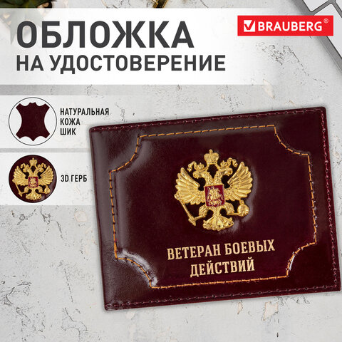 Обложка для удостоверения "Ветеран боевых действий" BRAUBERG надежно защитит документ от изнашивания и загрязнения.