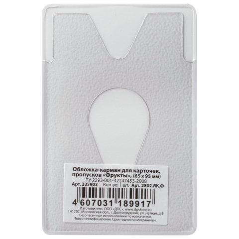 Обложка-карман для карт, пропусков "Фрукты", 95х65 мм, ПВХ, полноцветный рисунок, дизайн ассорти, ДПС, 2802.ЯК.Ф