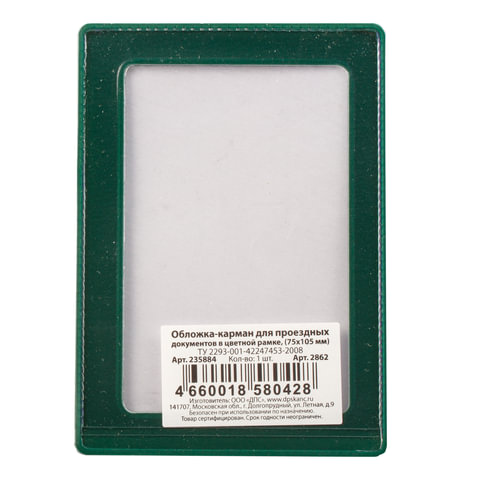 Обложка-карман для проездных документов, карт, пропусков, 105х75 мм, прозрачная, ПВХ, в цветной рамке, ассорти, ДПС, 2862