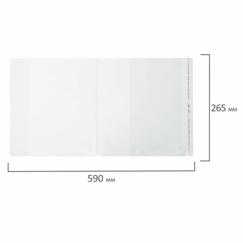 Обложка ПП со штрихкодом для учебников БОЛЬШОГО ФОРМАТА, ПЛОТНАЯ, 100 мкм, 265х590 мм, универсальная, прозрачная, ПИФАГОР, 229359