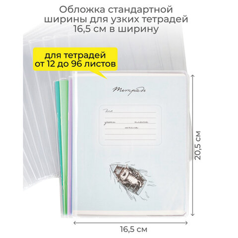 Обложка ПВХ со штрихкодом для тетрадей, ПЛОТНАЯ, 110 мкм, 209х340 мм, прозрачная, ДПС, 1111.1, 1111,1