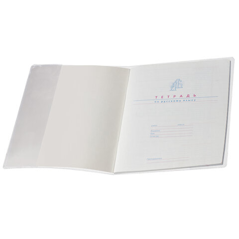 Обложки ПВХ для тетрадей и дневников, КОМПЛЕКТ 10 шт., ПЛОТНЫЕ, 100 мкм, 208х346 мм, прозрачные, ПИФАГОР, 229304