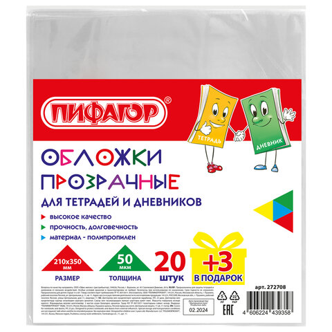 Прозрачные обложки ПИФАГОР предохраняют тетради и дневники от внешних воздействий, увеличивая срок их службы и сохраняя прекрасный внешний вид.
