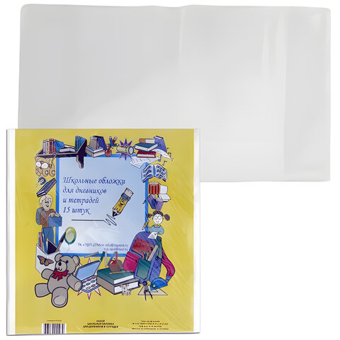 Обложки ПВХ для тетрадей и дневников, КОМПЛЕКТ 15 шт., ПЛОТНЫЕ, 110 мкм, 212х350 мм, прозрачные, 15.14