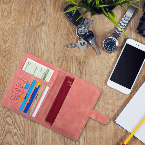 Обложка для паспорта и документов с защитой от считывания, 9 карманов, магнит, экокожа, розовая, BRAUBERG, 238755
