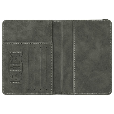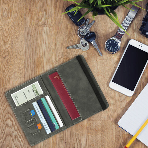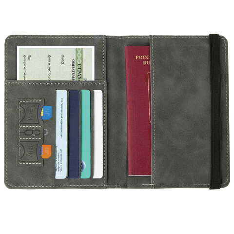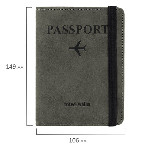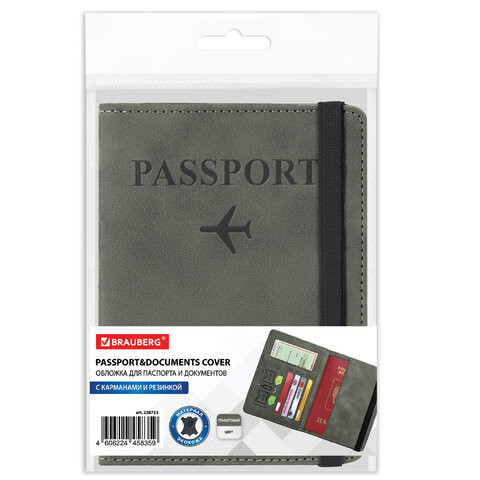 Обложка для паспорта и документов с защитой от считывания, 9 карманов, резинка, экокожа, графитовая, BRAUBERG, 238753