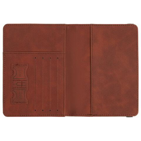 Обложка для паспорта и документов с защитой от считывания, 9 карманов, резинка, экокожа, коричневая, BRAUBERG, 238751